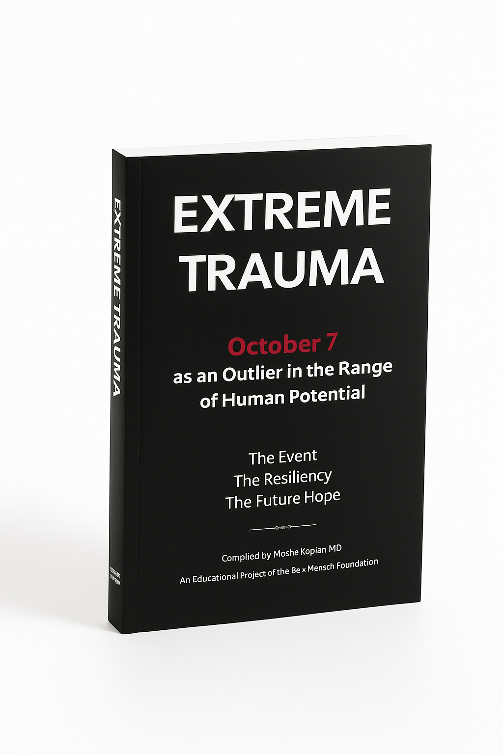 Extreme Trauma: Oct. 7 as an Outlier in Human Potential is more than a book—it is a mission. Compiled by Dr. Moshe Kaplan and published by the Be A Mensch Foundation, it gathers the voices of leading influencers, journalists, and essayists to confront the horror of October 7th while illuminating the extraordinary resilience of the Jewish people.